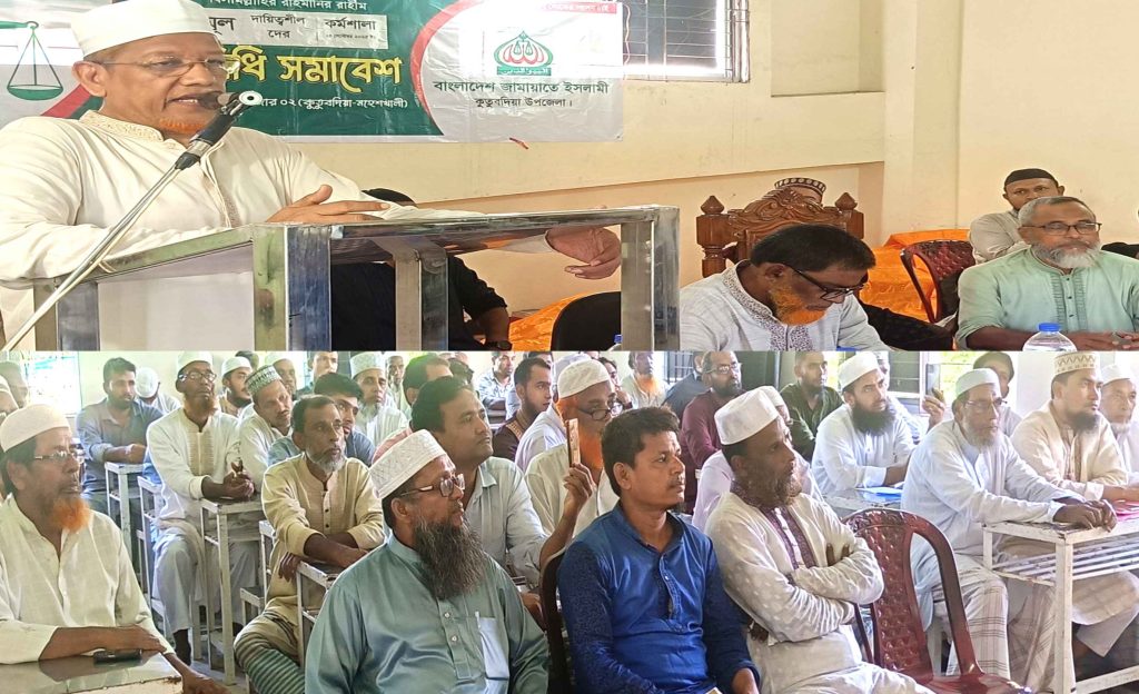 গতকাল বুধবার (২৪ সেপ্টেম্বর) কুতুবদিয়া উপজেলার উত্তর ধূরুং ও দক্ষিণ ধূরুং ইউনিয়ন জামায়াতের তৃণমূল প্রতিনিধি সমাবেশে প্রধান অতিথির বক্তব্য রাখতে গিয়ে উপরোক্ত কথাগুলো বলেন। এ সময় কক্সবাজার জেলা জামায়াতের সহকারী সেক্রেটারি শামসুল আলম বাহাদুর, উপজেলা জামায়াতের আমীর ও সাবেক চেয়ারম্যান আ.স.ম. শাহরিয়ার চৌধুরী, সেক্রেটারি মাওঃ নুরুল আমিন, উত্তর ধূরুং ইউনিয়নের সভাপতি ছৈয়দ আলম, সেক্রেটারি মেম্বার ইলিয়াস, দক্ষিণ ধূরুংয়ের সভাপতি মাওঃ বেলাল, সেক্রেটারি মাওঃ মিজানুর রহমান প্রমুখ উপস্থিত ছিলেন।